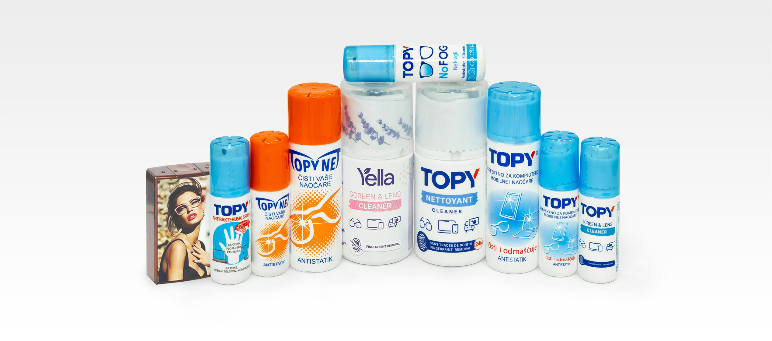 Les sprays TOPY, TOPYNET et YELLA sont vos alliés pour des surfaces propres et sûres ! Ils désinfectent efficacement et éliminent les bactéries, virus et champignons de vos lunettes et écrans de téléphones mobiles. Grâce à leur action antistatique et antibactérienne, vos surfaces restent propres plus longtemps sans endommager le revêtement antireflet. Ils contiennent une formule qui agit instantanément, rapidement et efficacement sur les surfaces!